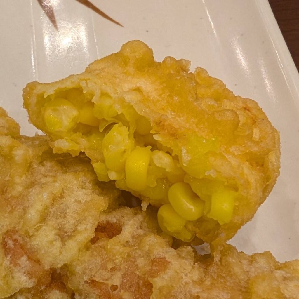 とうもろこし天はコーンクリーム系の生地をまとわせた状態で揚げているらしい。